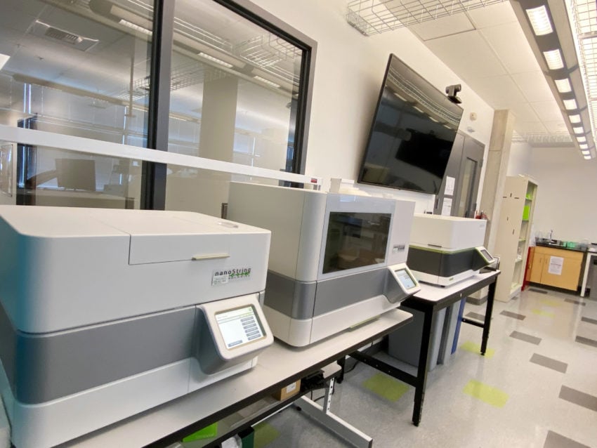 The facility includes three labs and adequate space and equipment to store ours and our customers’ samples safely. We work according to Good Laboratory Practices (GLP), which means our QC practices are highly standardized. Each sample coming into the facility is analyzed for quantity and quality ─ on a Qubit and Bioanalyzer system, after passing QC, we run the nCounter experiment─ and we perform QC on the generated nCounter data.
