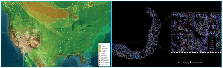 Just as government spatial science agencies monitor air quality, spatial biologists follow cancer progression and treatment. Microscopic spatial data can be utilized to:
