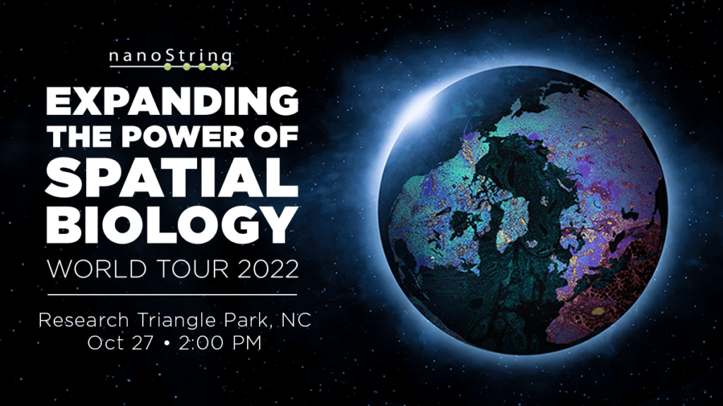 NanoString is taking over the North Carolina Biotechnology Center! We invite you to an afternoon filled with presentations and discussions all about the future of spatial biology. Join us at our free event and network with spatial biology experts from Duke, University of North Carolina, and biotech organizations in Research Triangle Park, North Carolina.
