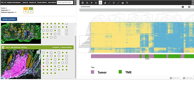 - Visualize large data matrices using clustering analyses to determine significant changes associated with specific tissue morphology or cell type