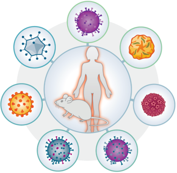 The targeted and customizable nature of nCounter technology makes it easy to profile transcripts from the host and one or more pathogens simultaneously. Probes for pathogens can be added as a Panel Plus spike-in to an off-the-shelf human or mouse Gene Expression Panel or included in a de novo Custom CodeSet. The nCounter Viral Panel Plus Menu is a list of pre-designed Research Use Only probes for eight viruses associated with chronic disease and/or cancer. You can use the pre-designed probes as is in a Panel Plus design or mix and match probes from different viruses to create your own Panel Plus of choice. Probes were designed to cover as many sequences as possible while at the same time ensuring sensitivity, specificity, and breadth of coverage.