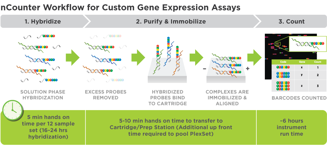 nCounter® Gene Expression assays reduce time to data with a simple workflow of less than 15 minutes hands-on time and streamlined analysis, generating results in under 24 hours. The platform is ideal for processing higher numbers of samples commonly seen in studies with plants, animals, and model organisms; minimal hands-on time maximizes productivity in the lab.