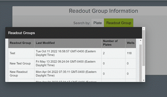 - Select the tab “Search by Readout Group”